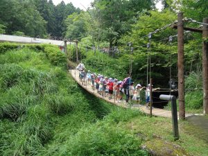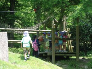 ぐらぐら揺れる吊り橋を慎重にわたって、フィールドアスレチックに到着👣
