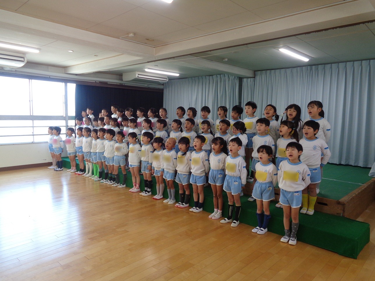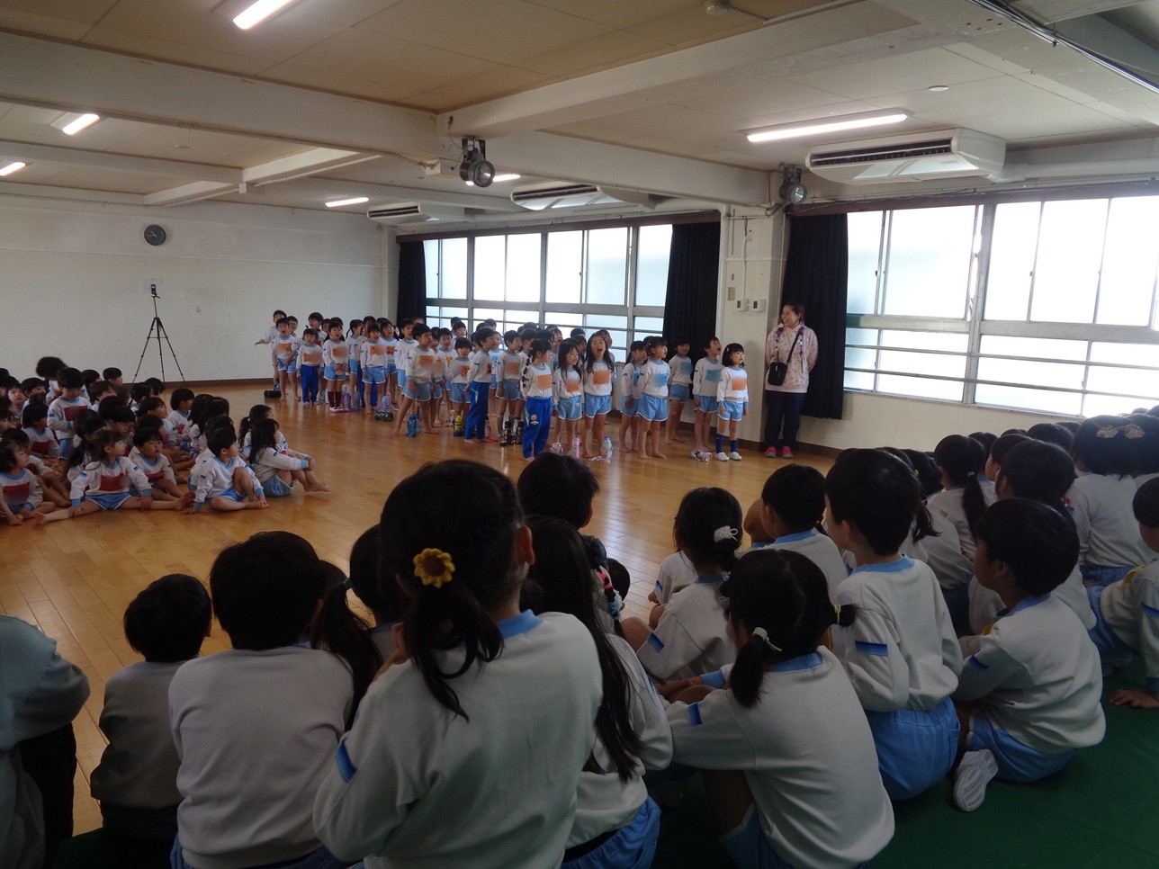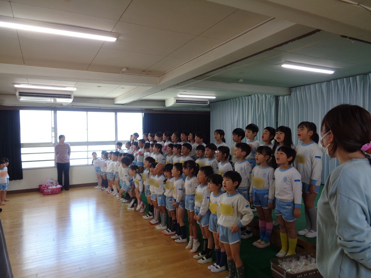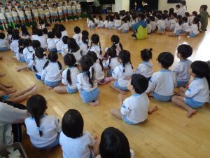 年中さんも年少さんも、年長さんのきれいな歌声に聞き入っていました🥰