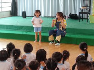 子どもたちの元気な声に ”こやまさわさん” も『タジタジ』