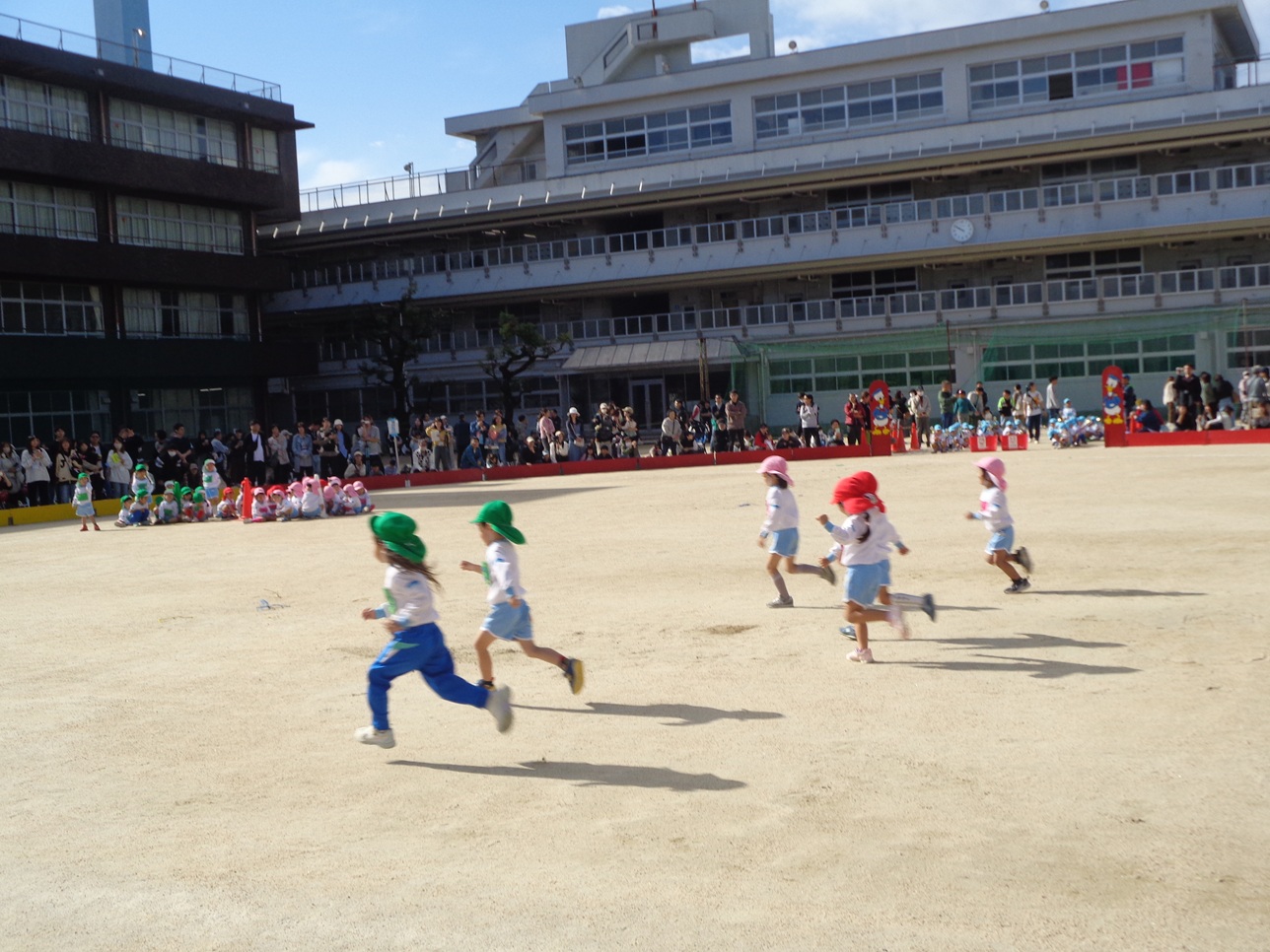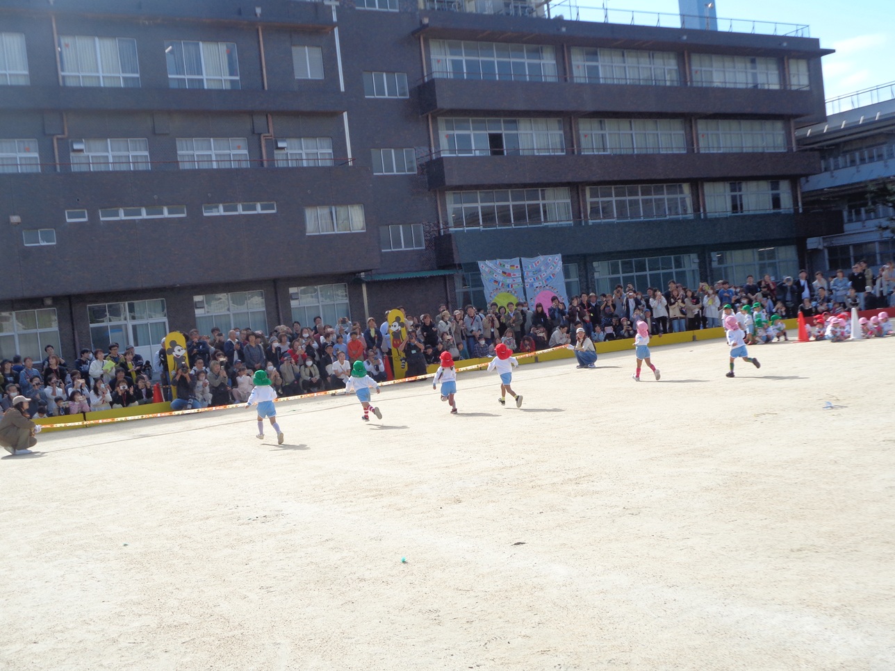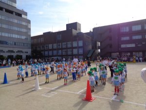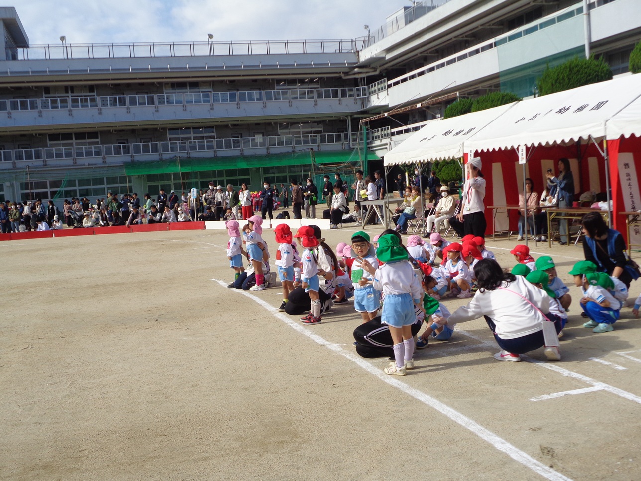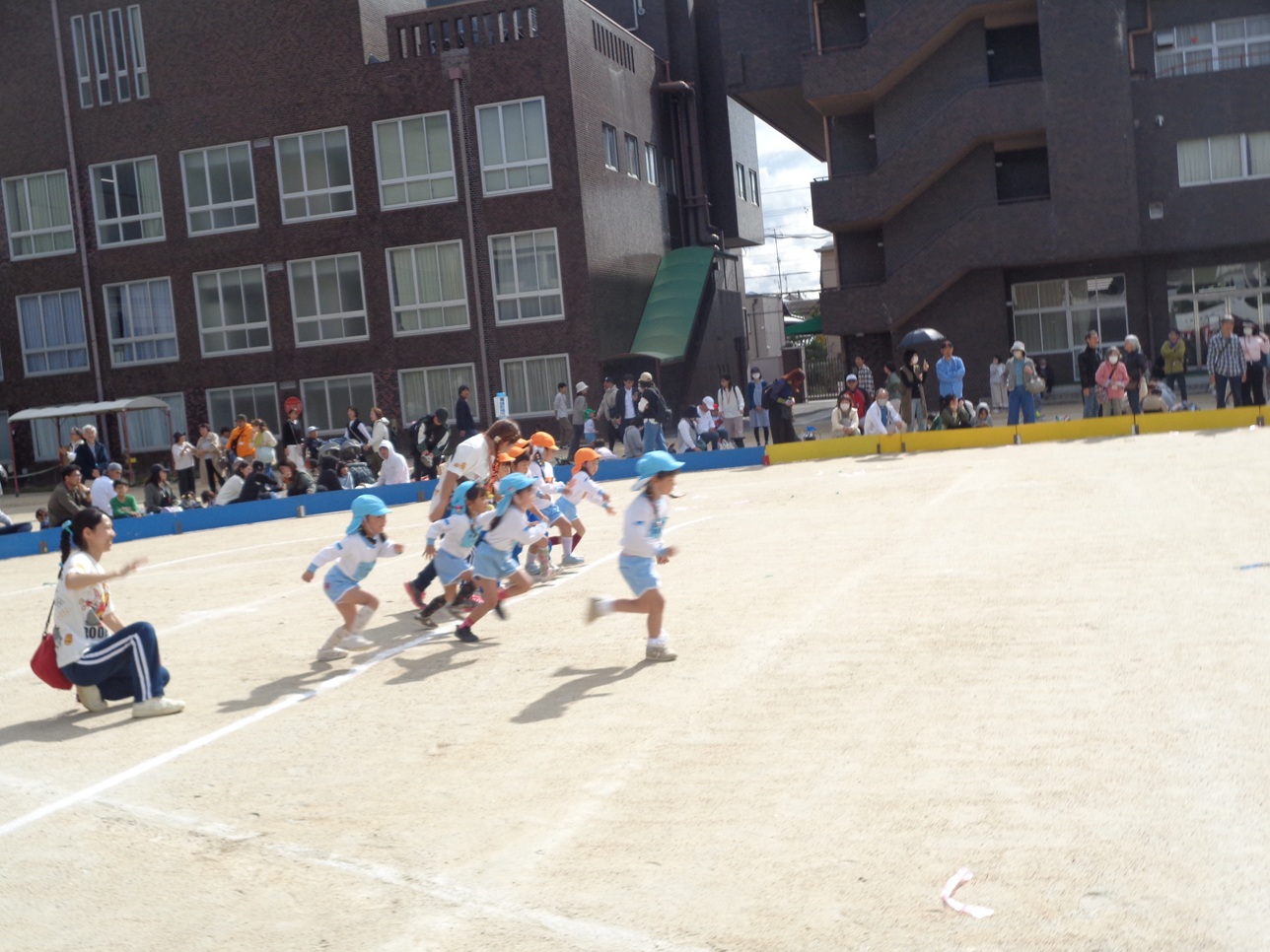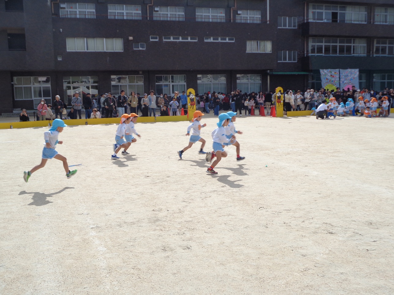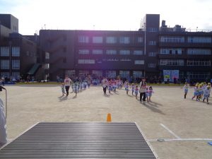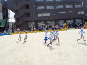 年中組さんのかけっこは、グランドを縦向きに使って年少さんの時より距離が長いです!
