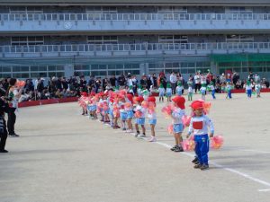 青門からひまわり組さん、赤門からばら組さんが入場します🥳