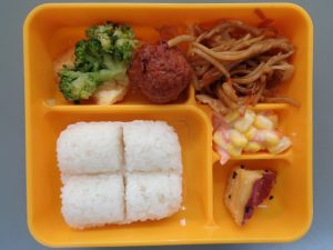 ベビーオムレツ ブロッコリーのコンソメ煮 肉団子のケチャップ和え 焼きそば 等
