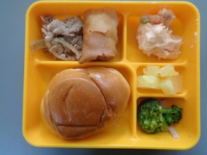 豚肉の生姜焼き 春巻き ポテトのオーロラサラダ ブロッコリーとハムのドレッシング和え 等
