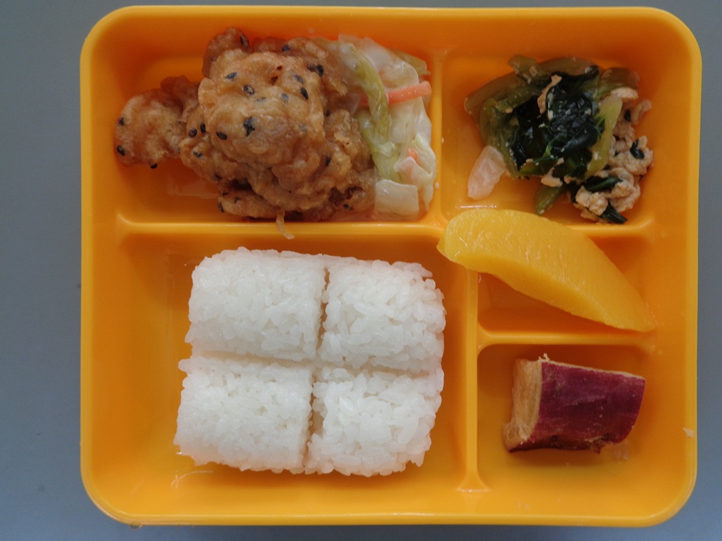 チキン南蛮 キャベツと人参のマヨネーズ和え チンゲン菜の卵とじ さつまいもの醤油煮 等