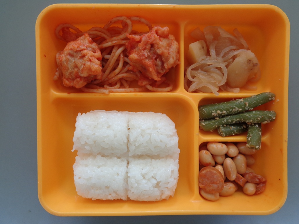 あじと豆腐のボール天ぷら イタリアンスパゲッティ 鶏じゃが ポークビーンズ 等