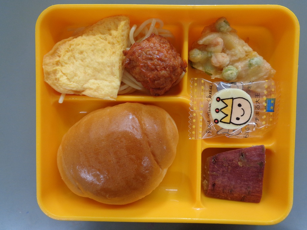 ベビーオムレツ 肉団子のケチャップ和え スパゲッティのオイル和え ミックスベジタブルと玉ねぎのかき揚げ 等