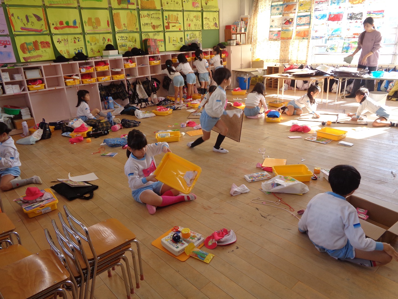 自分のもちものや下足箱、ロッカーをきれいにしていきます🧼