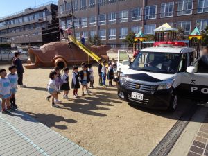おまわりさんから「幼稚園ちょくちょくのぞかせてもらいながらパトロールします」と